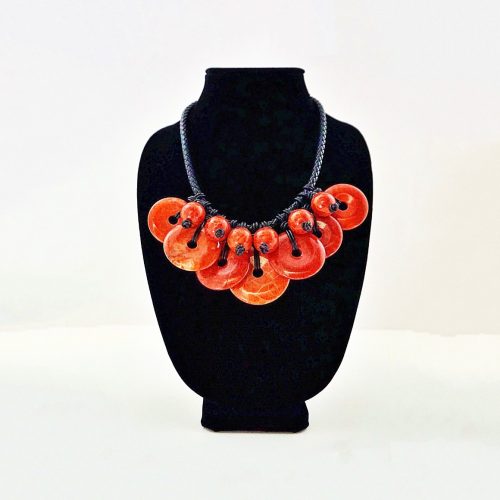 RED FOSSIL CORAL SPHERES AND DISCS NECKLACE