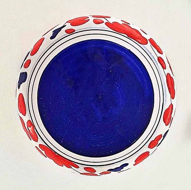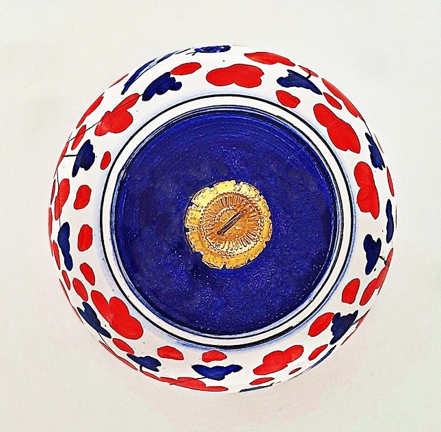 This round floral pattern Christmas ball is highlighted by two beautiful multi-colored songbirds.  The design circles the ball in a delightful dance.