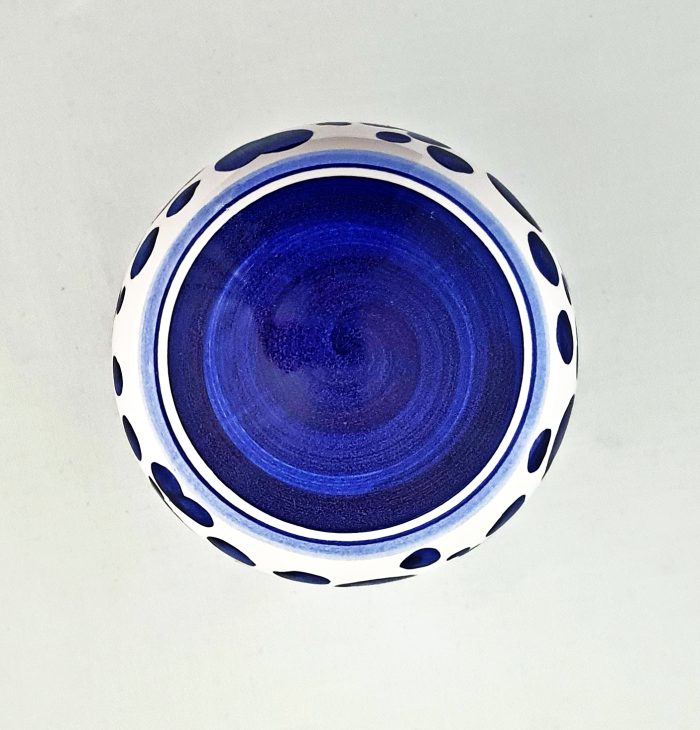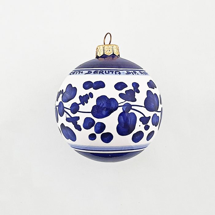 This round floral pattern Christmas ball is a colorful display of Arabesque influence.  These hand painted flowers circle the ball in a delightful dance.