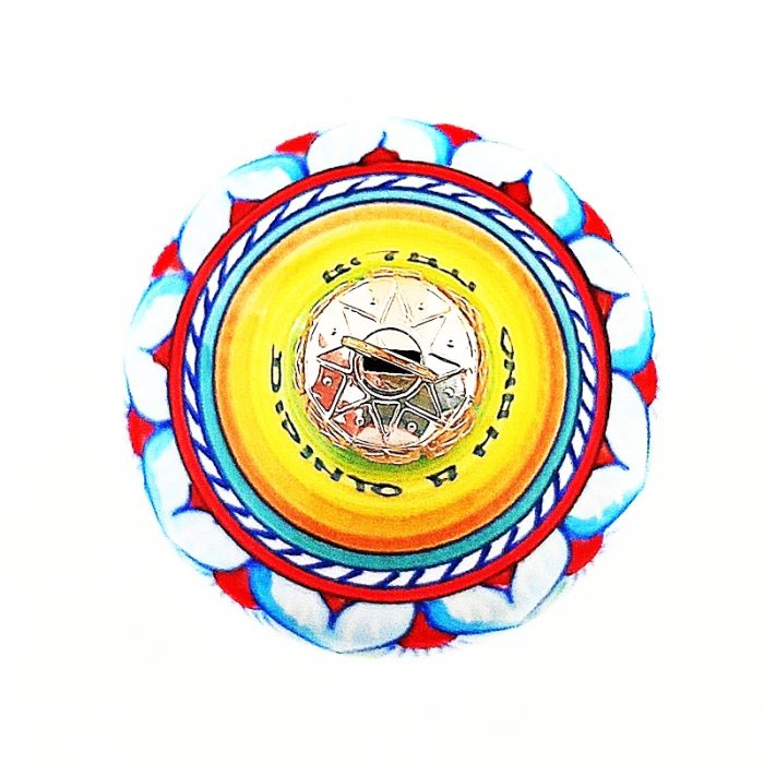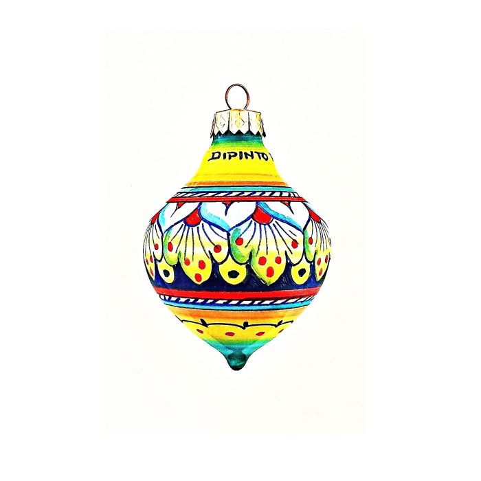 This lavish, hand-painted multi-colored teardrop shaped Christmas ornament is truly a work of art! The amazing designs featured on this ball are decorative motifs typical of Deruta and central Italy.