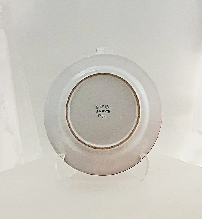 A tribute to the painterly creativity of our artisans in Deruta, Italy, this platter, with olive, orange, aqua and purple colored leaves is a sumptuous delight. The center is highlighted by a starburst gold sunflower, typical of central Italy.