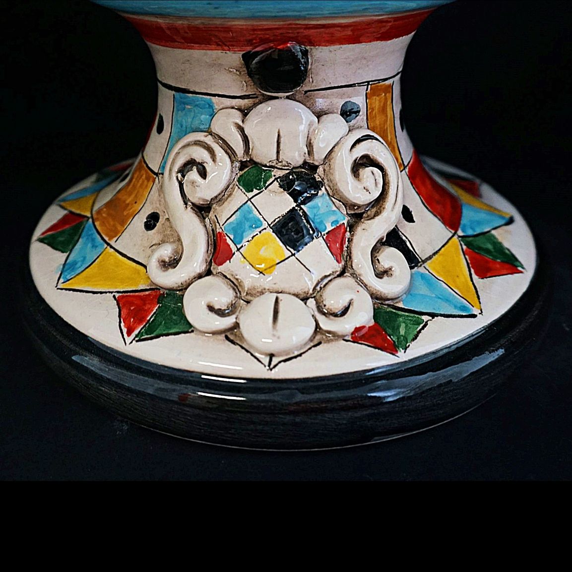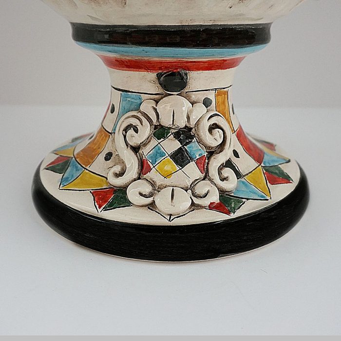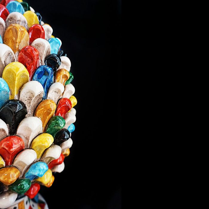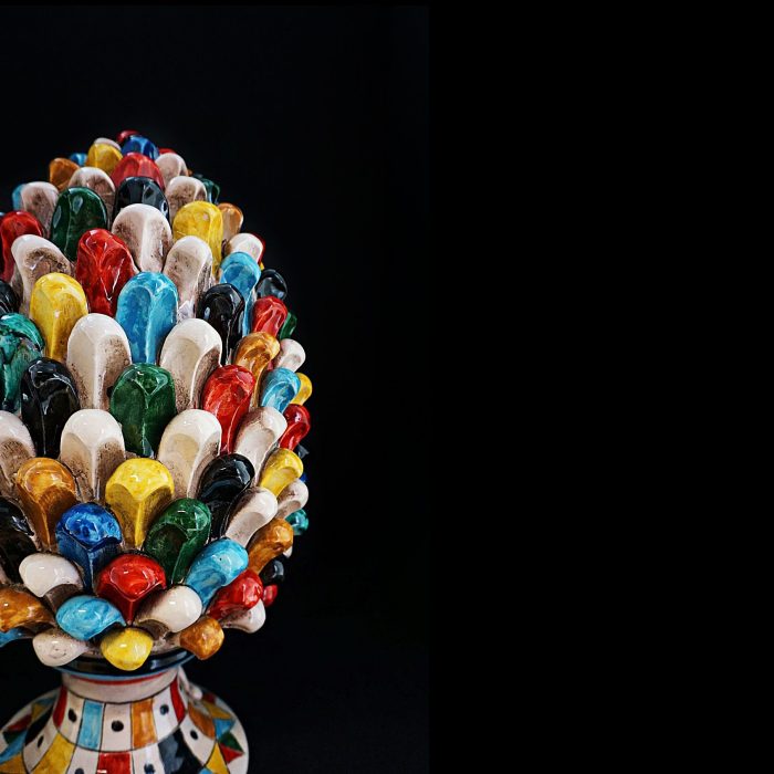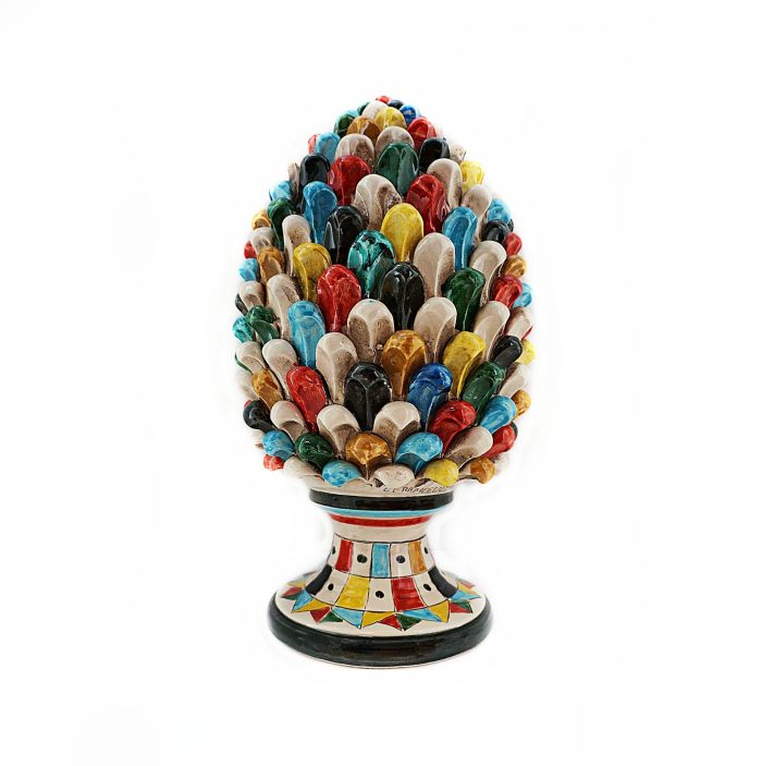 Our pine cone featured here is truly unique. Made of a rainbow of vivid colors, the entire piece is handmade by highly talented artisans in the Sicilian town of Caltagirone. This town has been a center for excellence in the production of fine ceramics for hundreds of years.