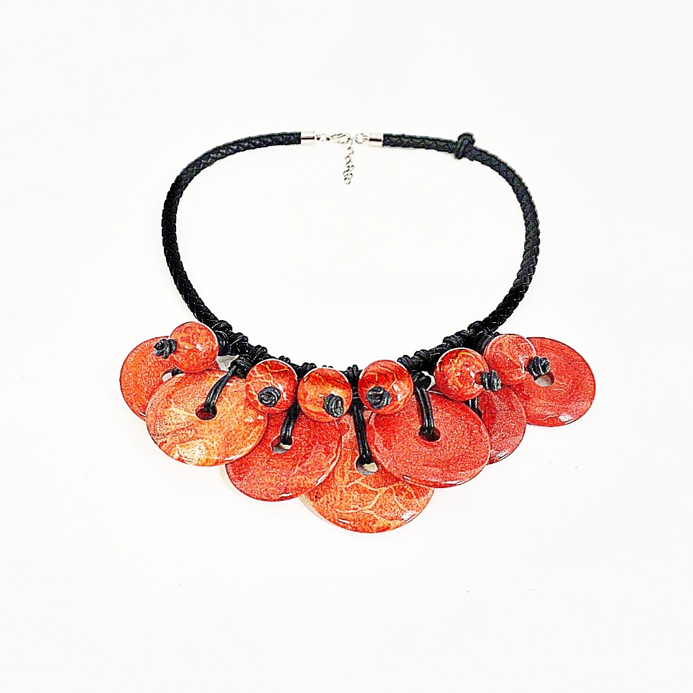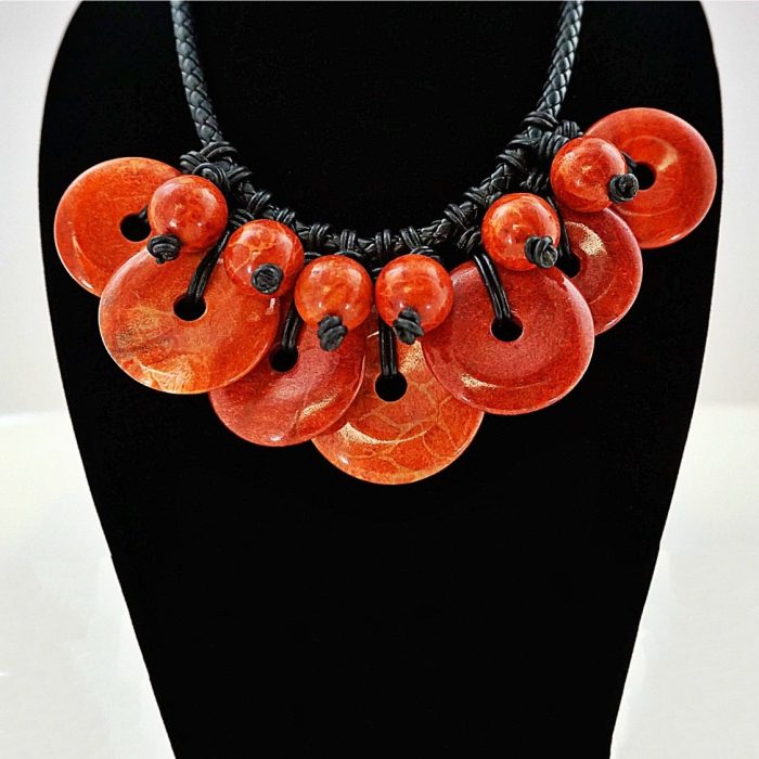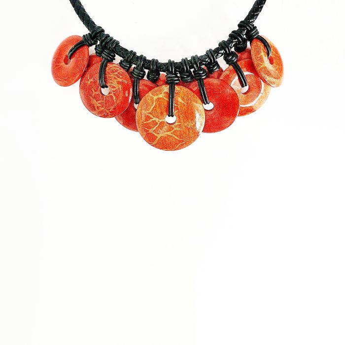 RED FOSSIL CORAL SPHERES AND DISCS NECKLACE