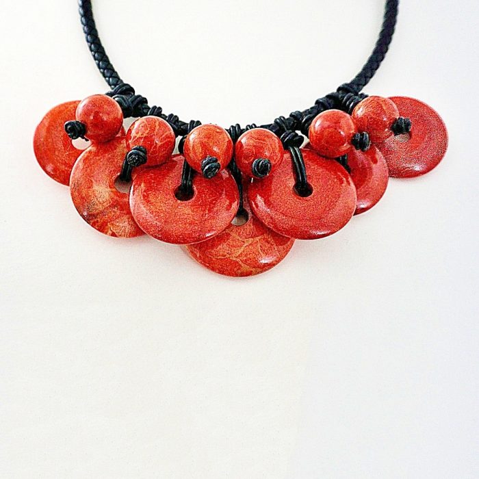 Home › Collections › Jewelry › Red Fossil Coral Spheres And Discs Necklace